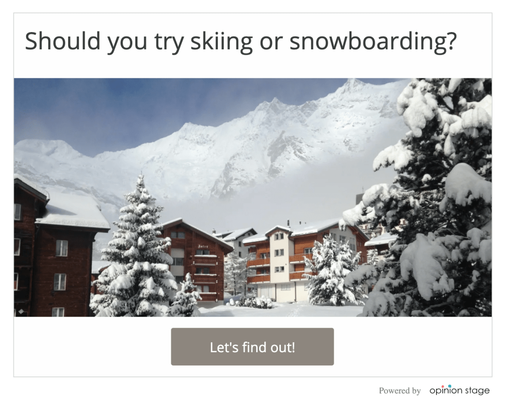 The big choice before your first day out on the slopes! If you’re having trouble deciding between skiing and snowboarding, tap or click “Let’s find out!” to take the quiz below.